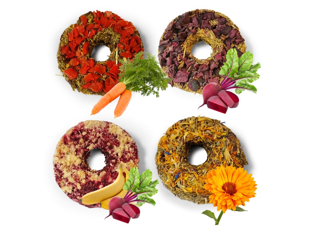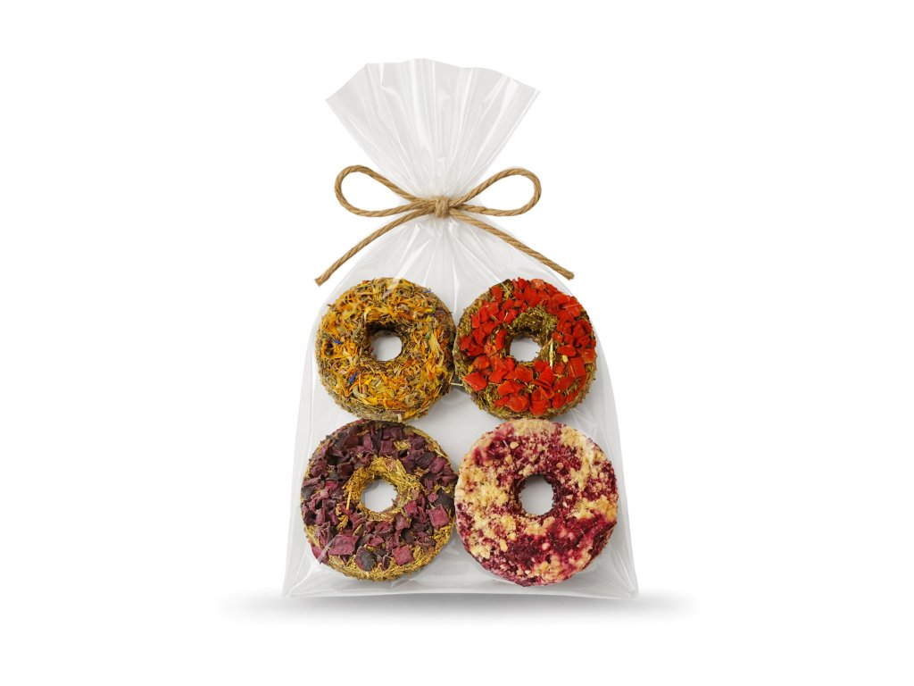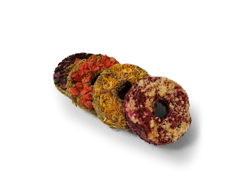 Sada bezobilných donutů PanMalina potěší bříško mazlíčka a vylepší vaši karmu. Jedná se o zdravý krmný doplněk pro hlodavce. Každý donut v sadě má jinou příchuť. Je vhodná pro všechny věkové kategorie a typy hlodavců.