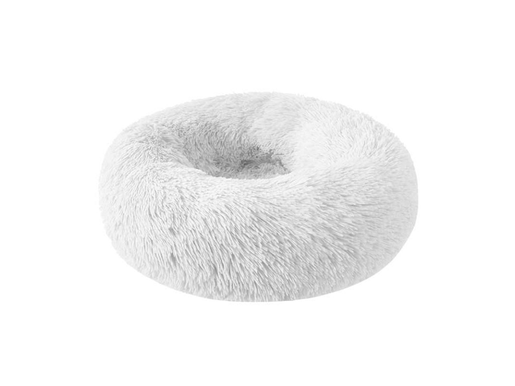 Bílý fluffy pelíšek vyrobený z příjemného hřejivého plyše. Rozměry pelíšku jsou 76x76x14 cm.