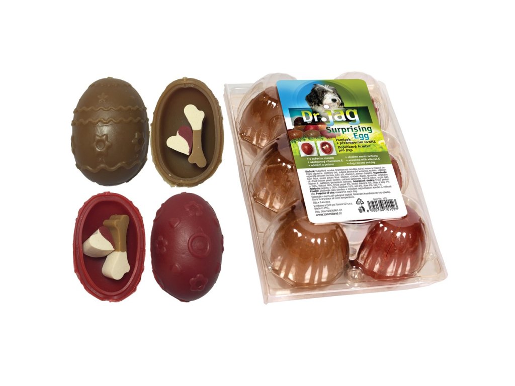 Pamlsek pro psy ve tvaru vajíčka s překvapením uvnitř. Nebalený pamlsek. Náhodná barva. Cena za 1 kus.