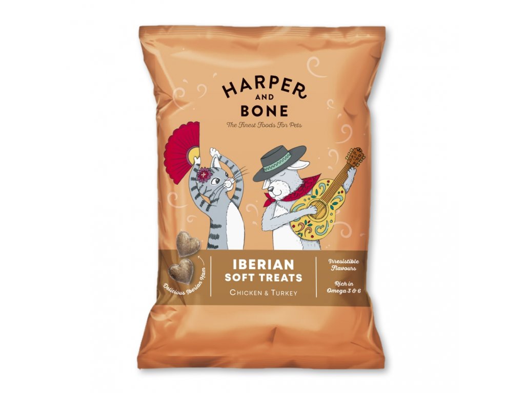 Harper and Bone Cat & Dog iberské měkké pamlsky kuře a krůta 90 g