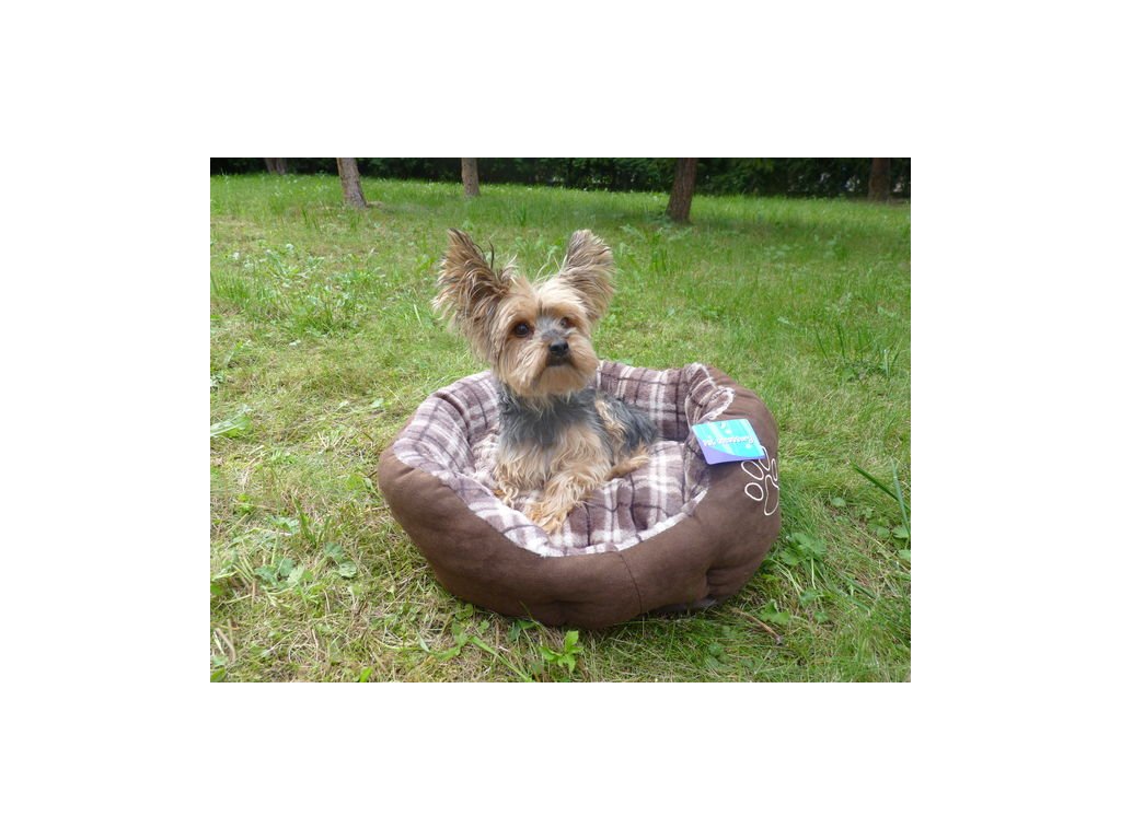 Malý hnědý pelíšek pro psy. Je vyrobený z mikrovlákna a umělé kožešiny. Pelech má velikost 45x40 cm a je tak vhodný pro malá psí plemena. Pelech má vyjmutelný vnitřní polštář. Je snadno pratelný.