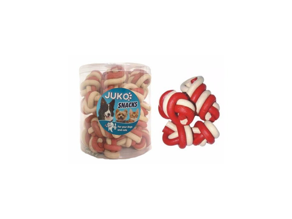 Pochoutka pro psy ve tvaru krouceného uzlu s vanilkovou a hovězí příchutí.