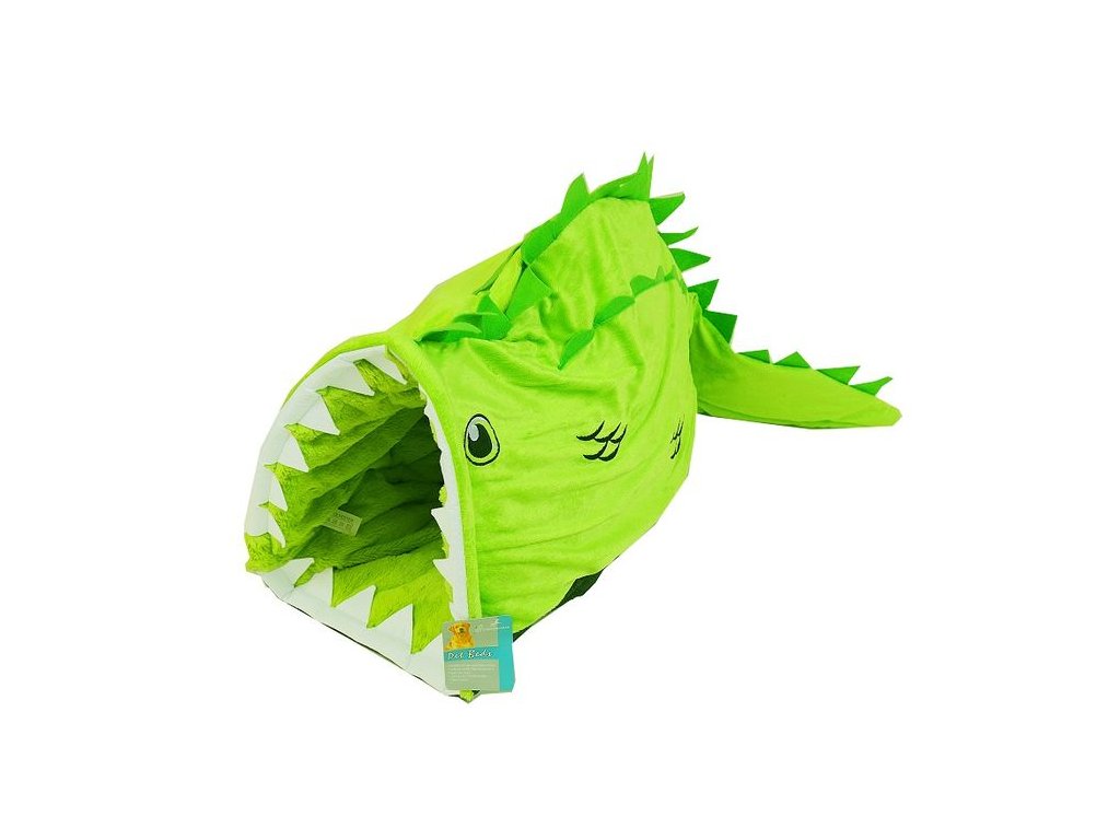 Srandovní kukaň ve tvaru krokodýla ve světle zelené barvě o velikosti 88x33x27 cm. Kukaň je jemná a uvnitř vytváří různé záhyby, které vytváří útulný prostor pro klidný odpočinek vašeho psa/kočky. Kukaň je snadno pratelná a má protiskluzové dno.