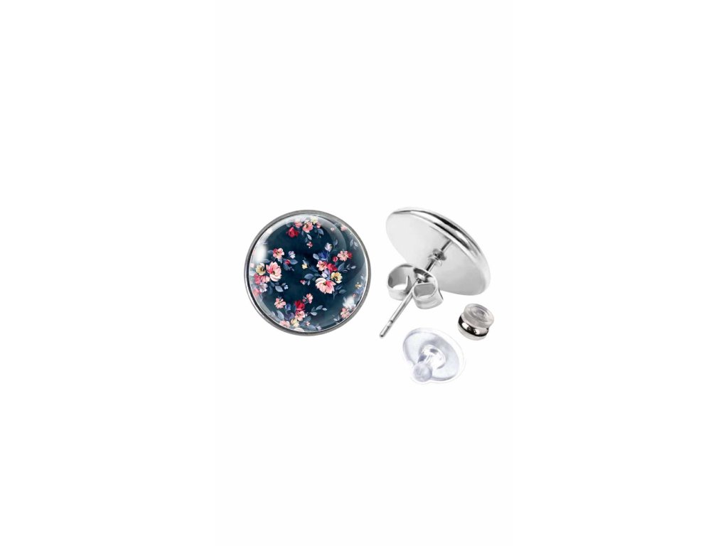 Peckové náušnice - pecky z chirurgické oceli 14 mm Modré květy