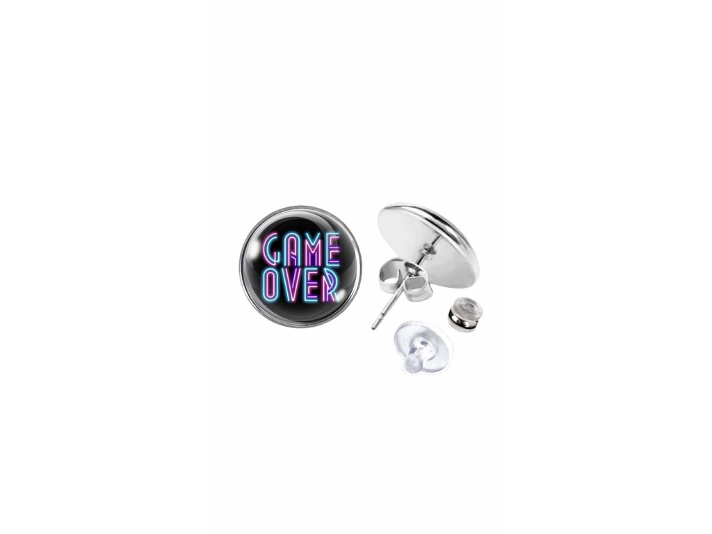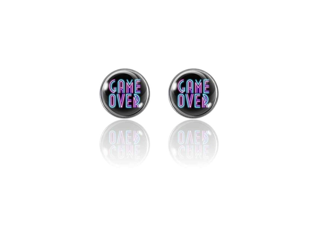 Peckové náušnice - pecky z chirurgické oceli 14 mm Game over