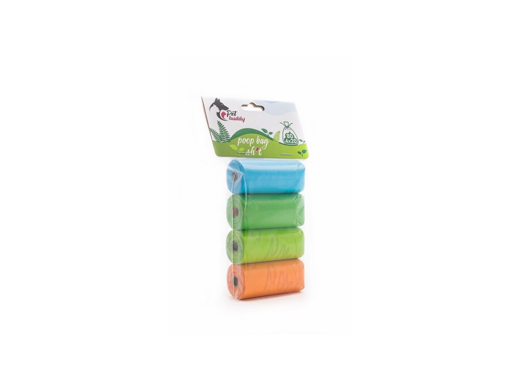 PetBuddy sáčky na exkrementy mix barev 4 role/ á 20 sáčků s potiskem