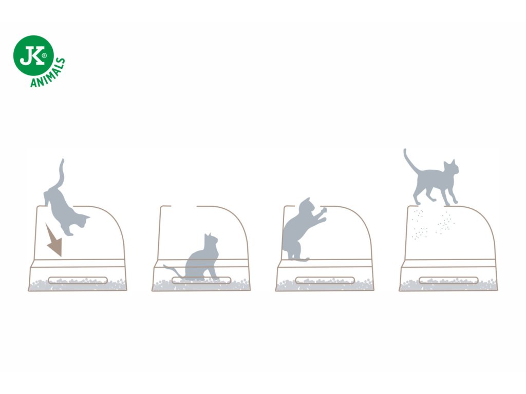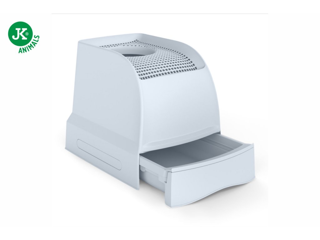 Plastová kočičí toaleta (WC) s horním vstupem. Horní vchod, jako alternativa k tradičnímu přednímu vchodu, je zárukou většího soukromí i pro velké kočky, vytváří méně nepořádku a zabraňuje psům v požírání steliva. Kočičí toaleta FRIDA je svého druhu jedinečná tím, že je vybavena zásuvkou, díky které je čištění rychlejší a jednodušší. Přídavný rám je nezbytný také při použití pytlů na odpad. Otvory proti rozptylu na spodní části pomáhají udržovat tlapky čisté.