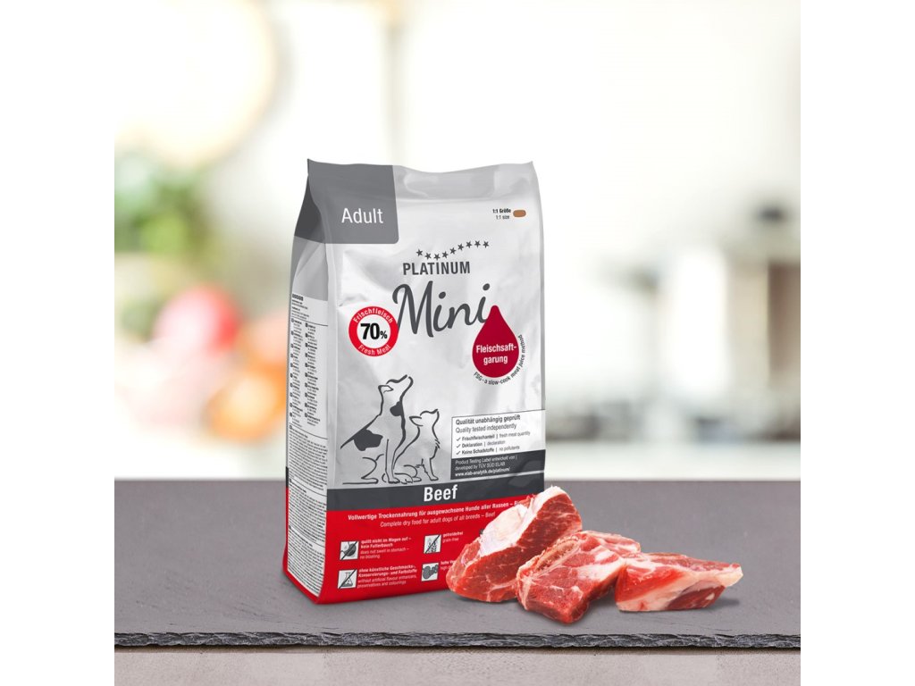 Krmivo Platinum Hovězí s bramborem je dobře stravitelné a u psů velmi oblíbené. Je skvělou volbou pro psy s potravinovou intolerancí, dospělé i aktivní seniory.