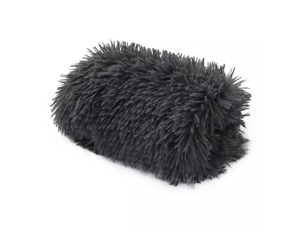 Tmavě šedá hebká fluffy deka 120x95 cm