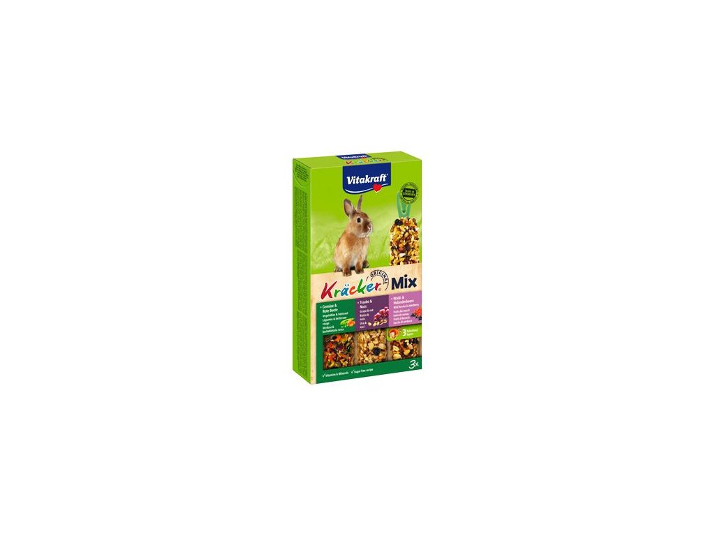 Vitakraft krekry Trio-Mix pro zakrslé králíky je doplňkové krmivo.