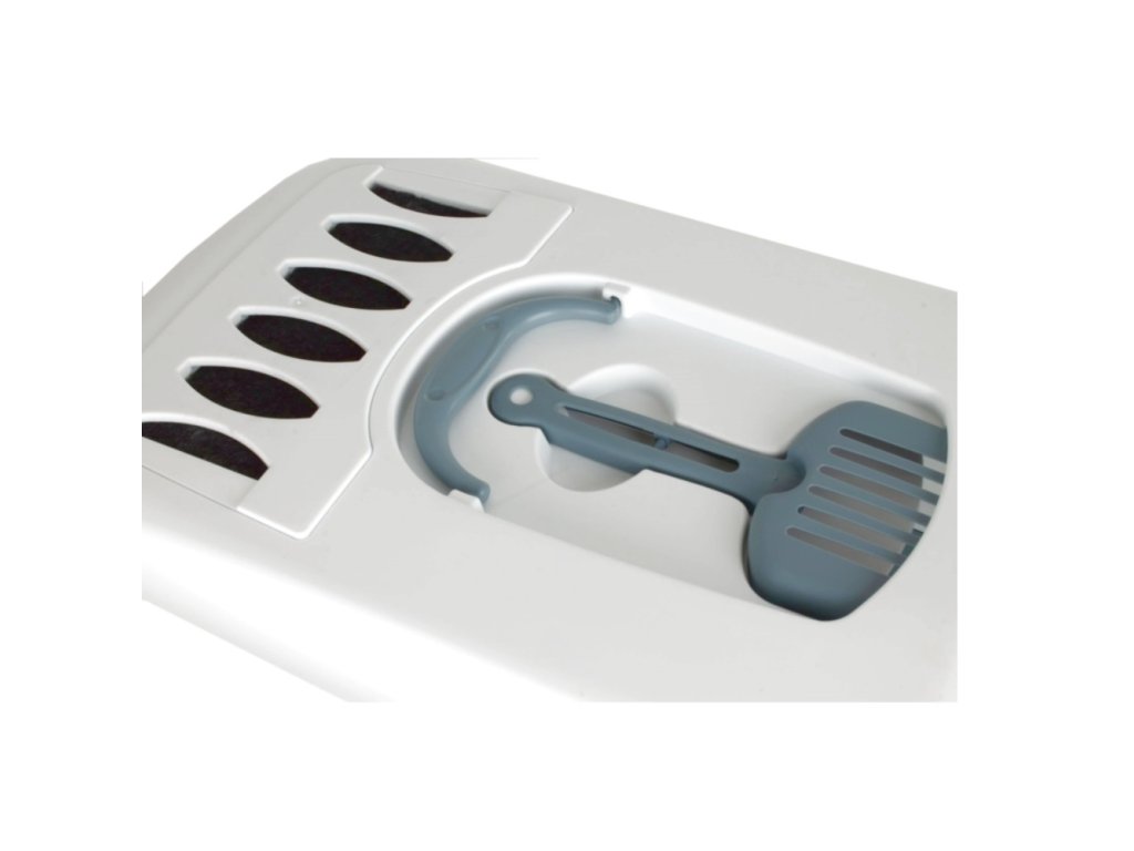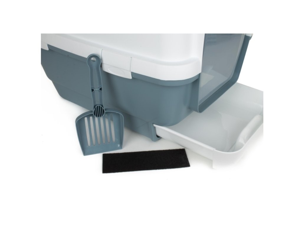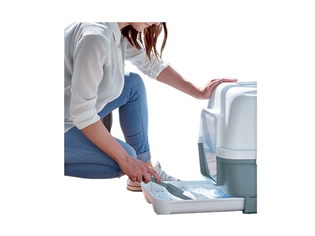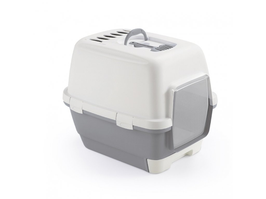 Uzavřené, prostorné wc pro kočky s dvířky z kvalitního odolného plastu.